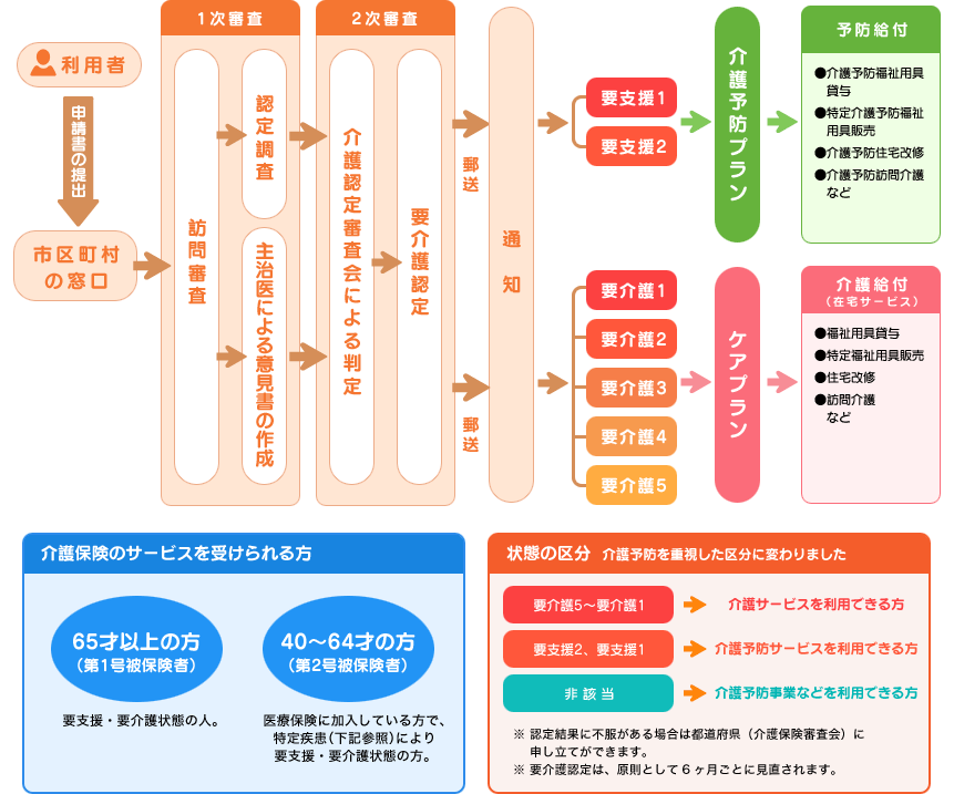 介護保険で介護サービスをご利用するには保険者である区市町村に介護認定を申請し、 要介護の認定を受ける必要があります。私達ケアマネージャー(介護支援専門員)がご本人様やご家族様に変わり要介護申請の手続きの代行をします。